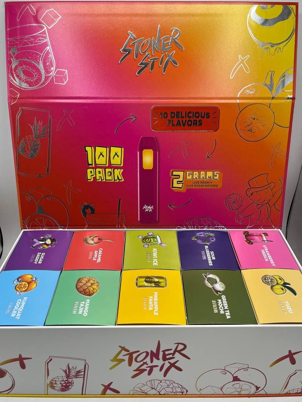 Each disposable contains 2 grams of high-potency cannabis extract, including infused cannabinoids such as THCa, Delta‑8, Delta‑10, or compliant HHC blends (depending on state legality). Customers demand stronger products — STONER STIX delivers.